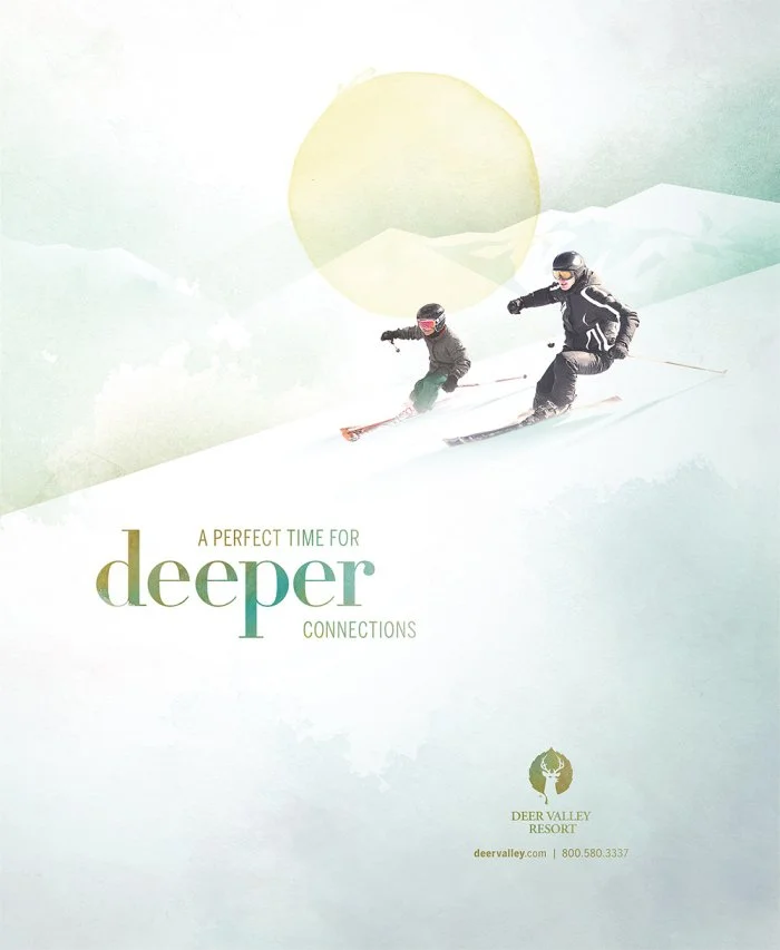 Always a class act, Deer Valley requested something artful and elegant for their national ad campaign. The underlying strategy highlighted the connections friends and family make on Deer Valley vacations. They’re not just trips … they’re traditions. The spacious feeling of the wide-open slopes makes room for parents and kids to connect, for friends to forge new inside jokes, for couples to cut the work talk and play outside together.